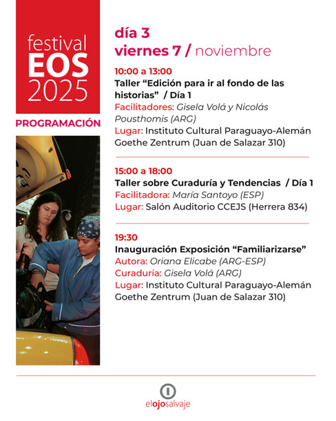 La asociación de fotógrafas y fotógrafos El Ojo Salvaje nace en el año 2008 de la mano de Jorge Sáenz y Fredi Casco. A lo largo de sus 15 años de existencia, han llevado a cabo ocho ediciones del Festival denominado El Ojo Salvaje – Mes de Fotografía en Paraguay, con la presencia de autores nacionales e internacionales.